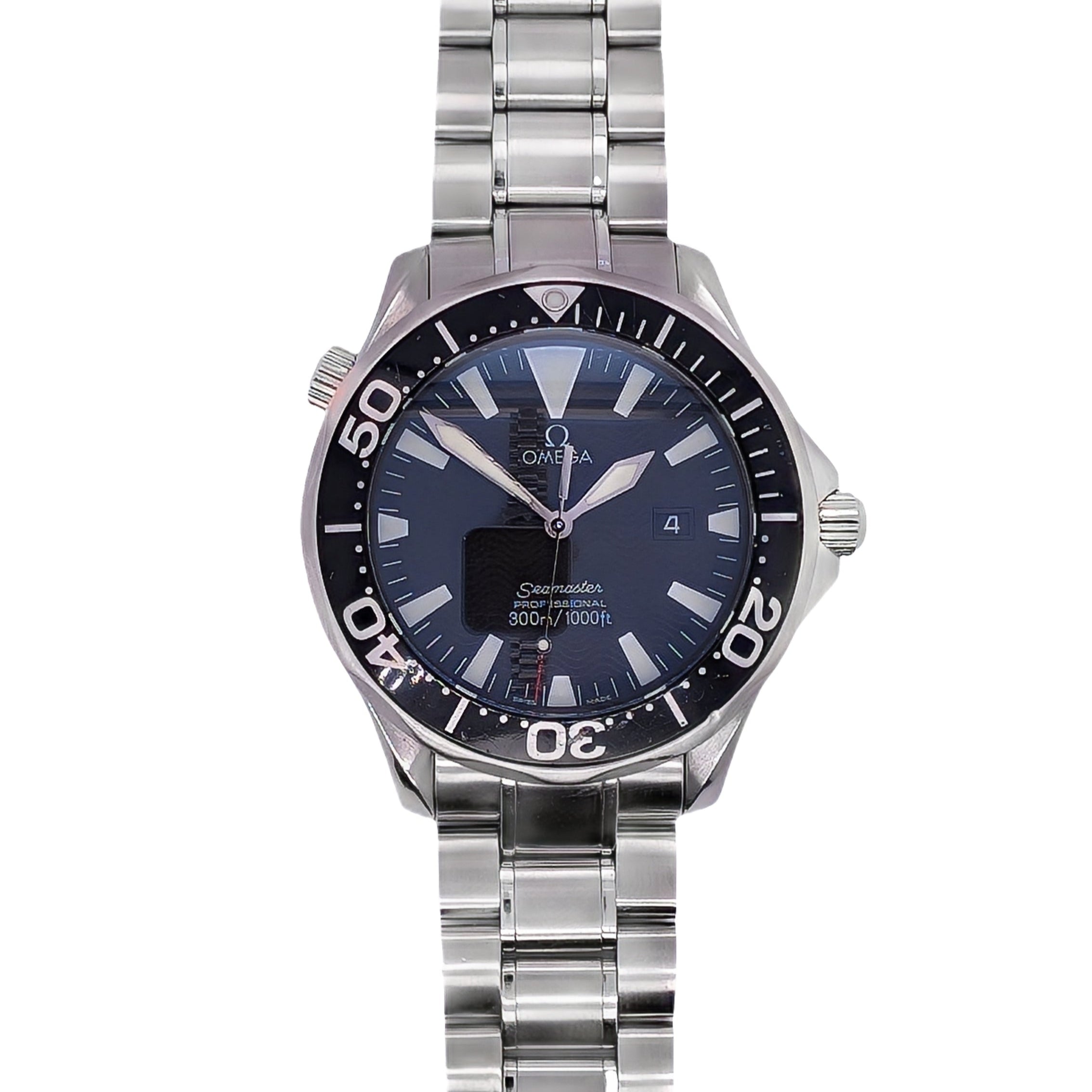 Driven by the high-precision Quartz Cal. 1538 movement, this Seamaster delivers exceptional timekeeping and low-maintenance reliability. The stainless steel bracelet (model 1610/930) adds a sleek, sporty finish, secured with a classic deployment clasp.
