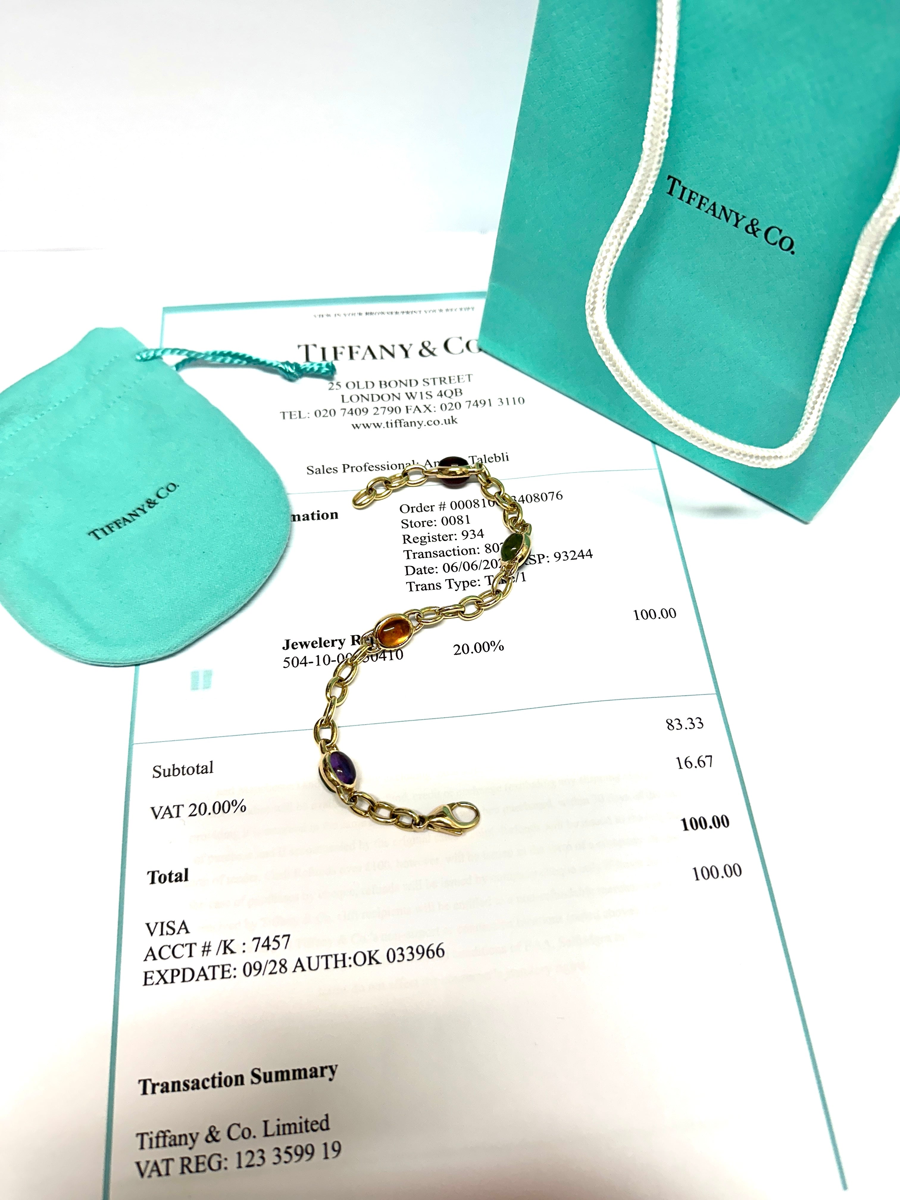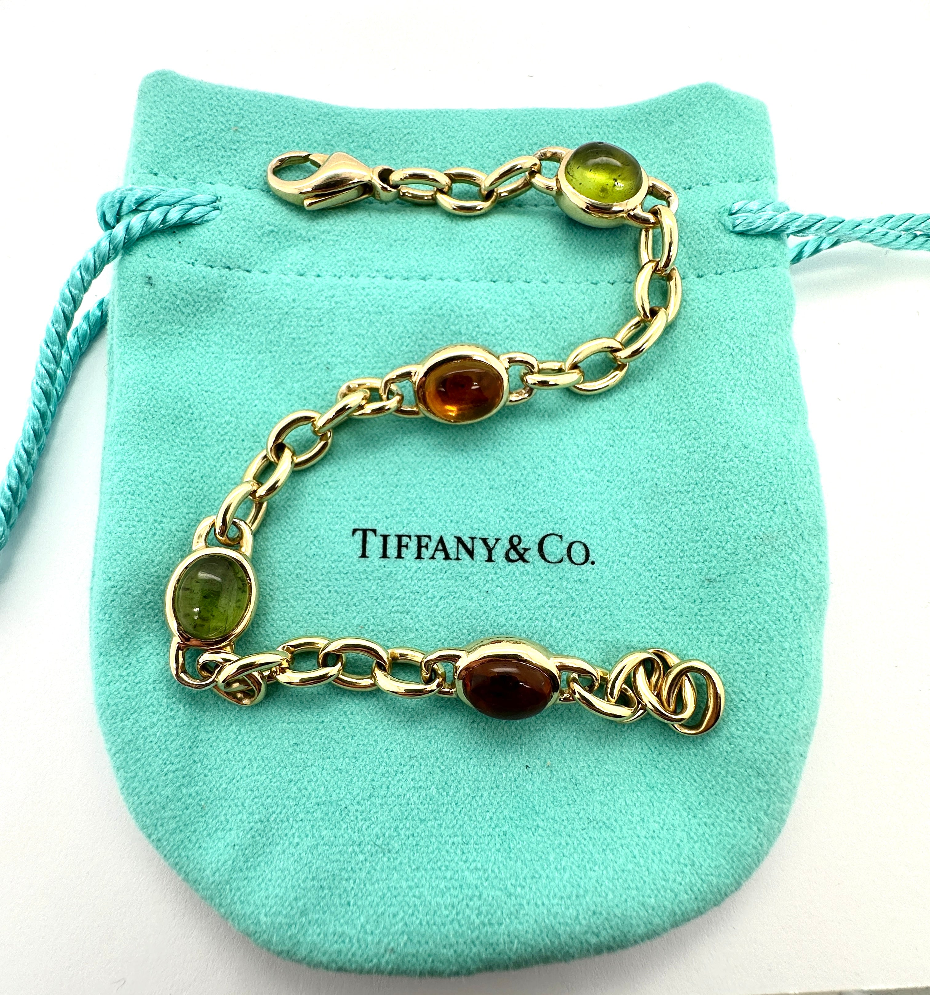 Celebrate timeless design and vibrant colour with this exceptional Tiffany & Co. 18ct yellow gold multi-gemstone bracelet, created by renowned designer Paloma Picasso. Crafted in solid 18ct yellow gold, this beautifully articulated piece showcases her bold, expressive aesthetic – combining high-end luxury with a joyful burst of colour.