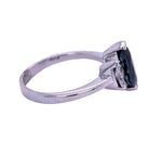 Elegant and refined, this stunning 18ct white gold ring features a striking marquise-cut sapphire measuring approximately 8.5mm x 4.5mm, beautifully complemented by two marquise-cut diamonds (each approximately 5mm x 2mm) set gracefully on either side.