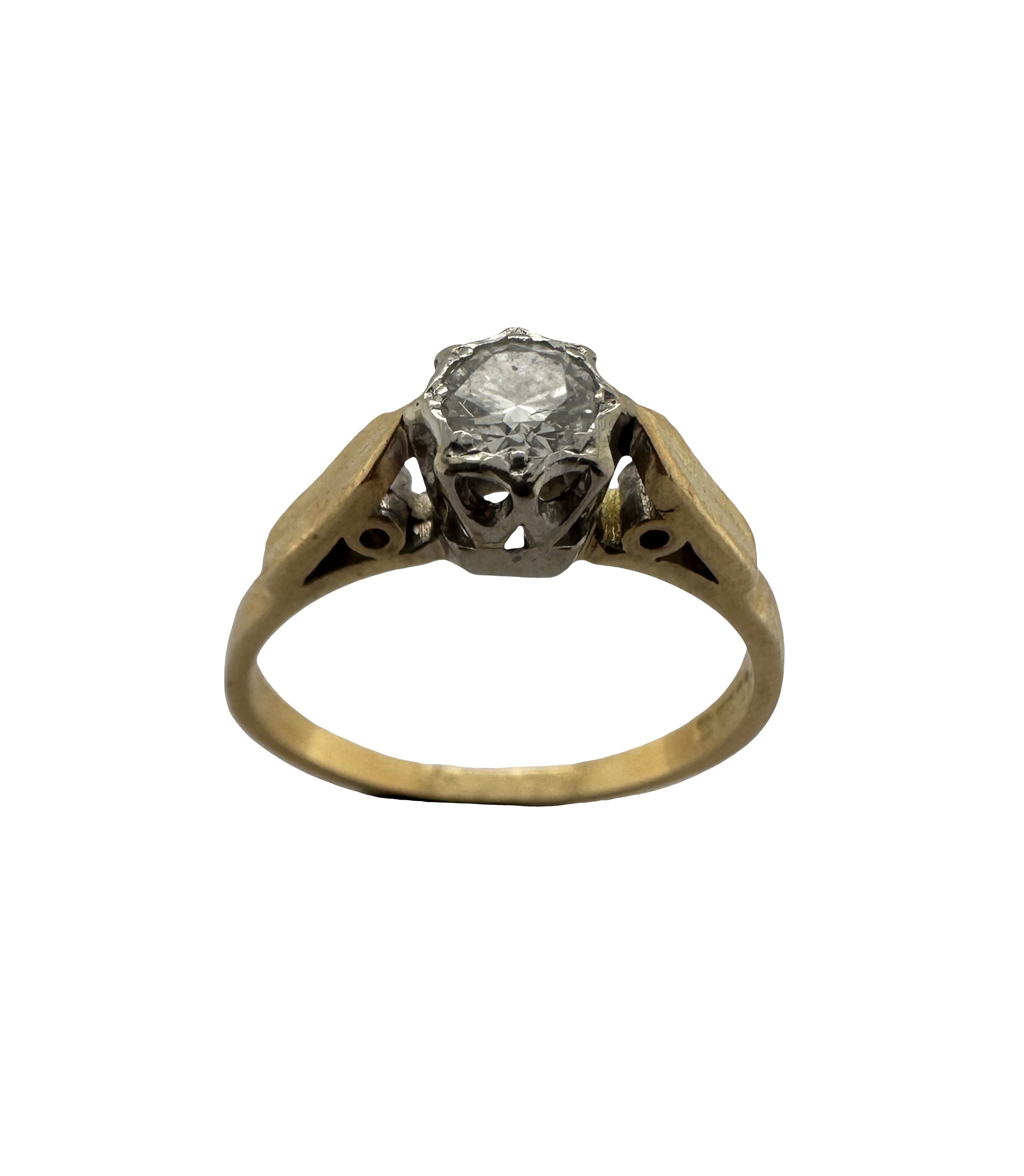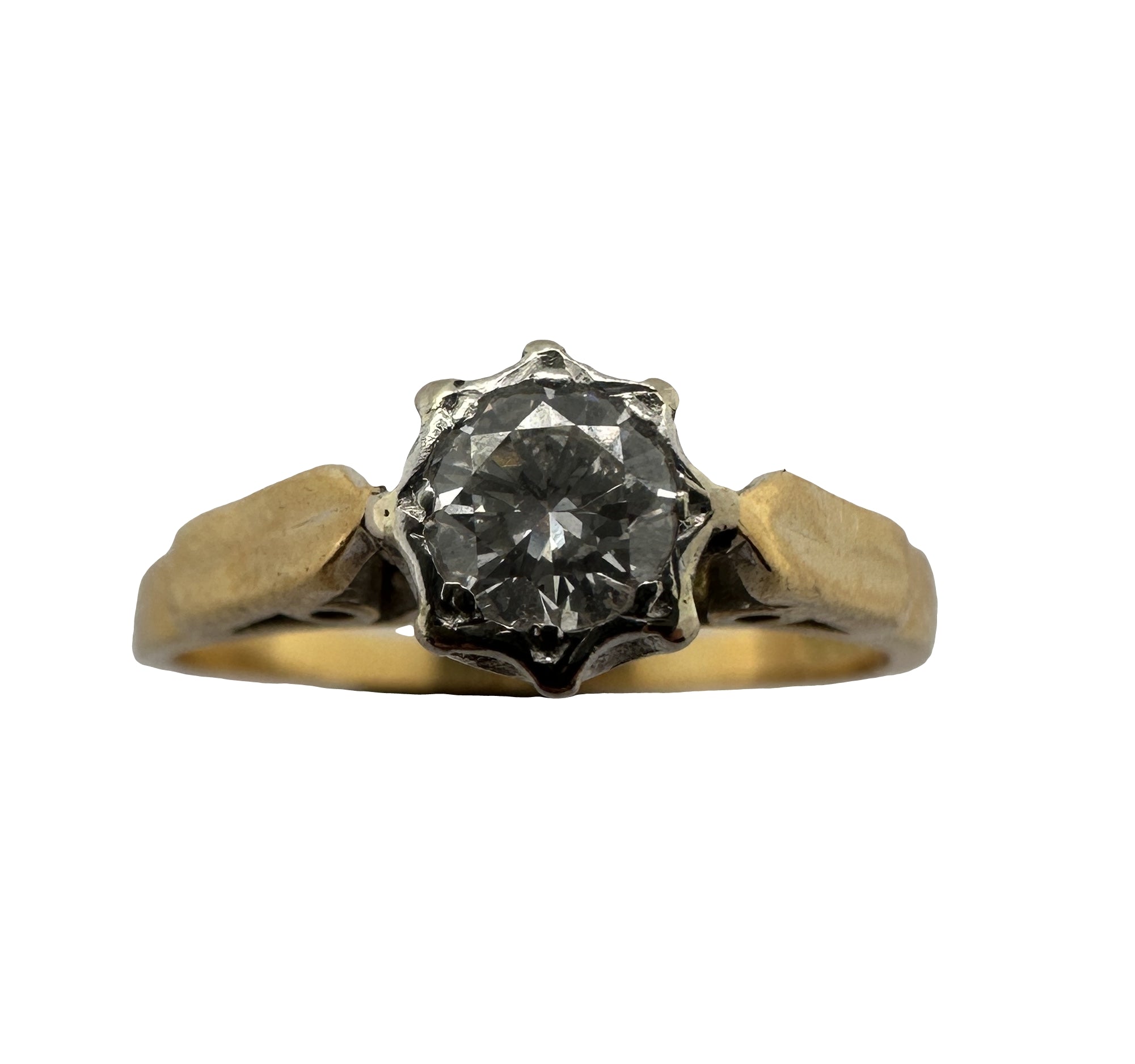 A beautifully refined piece, this 18ct yellow gold solitaire ring features a dazzling 0.23-carat princess cut diamond, elegantly held in a white gold collet to enhance the diamond’s brilliance. The contrast between the warm yellow gold band and the cool white gold setting creates a timeless and sophisticated look.