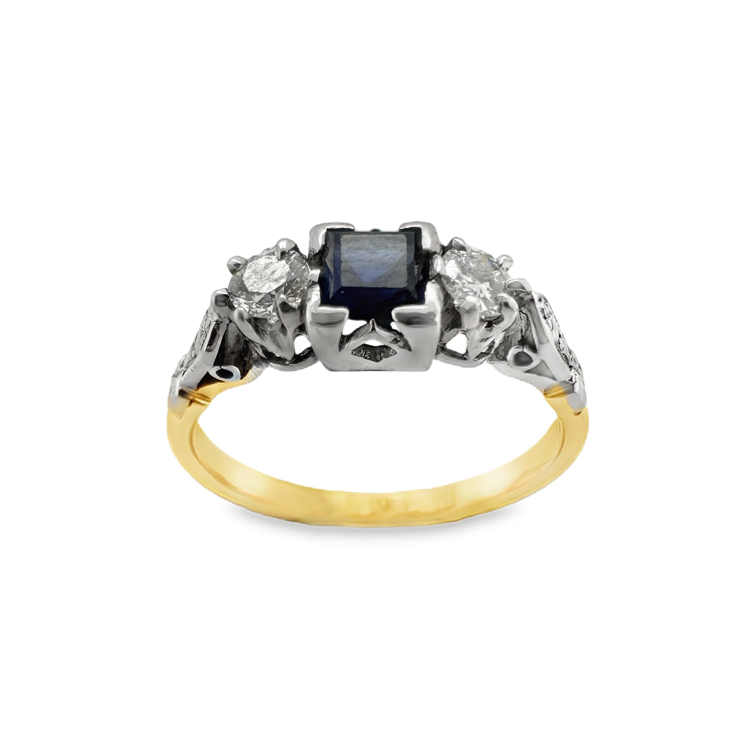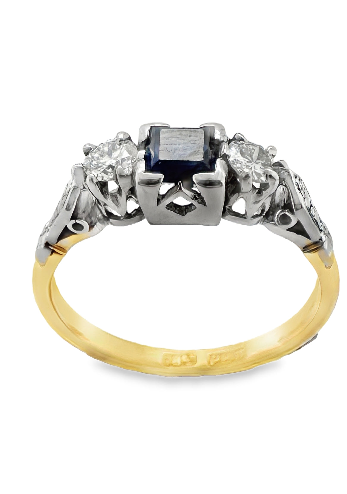 18ct Yellow Gold Platinum Sapphire & Diamond Ring