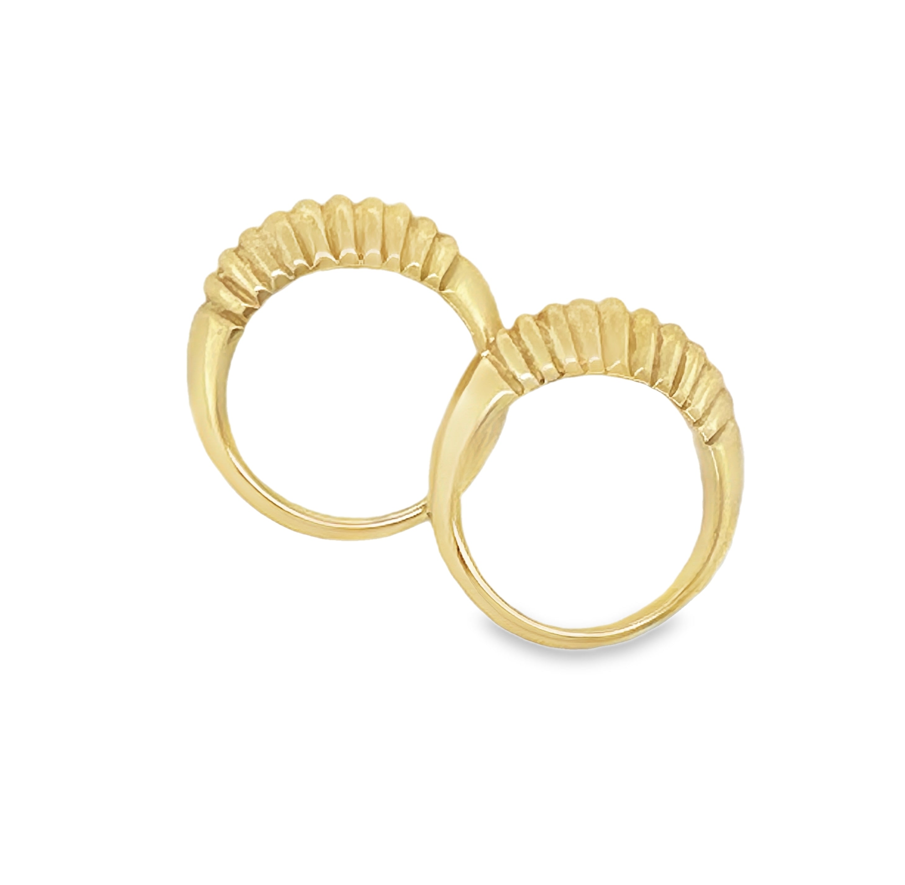 This distinctive ring is made up of two separate halves, designed to be worn together on the same finger to form a striking oyster shell silhouette. Expertly crafted in solid 9ct yellow gold and finished with a radiant polish, the design is both bold and refined – a modern statement with timeless appeal.