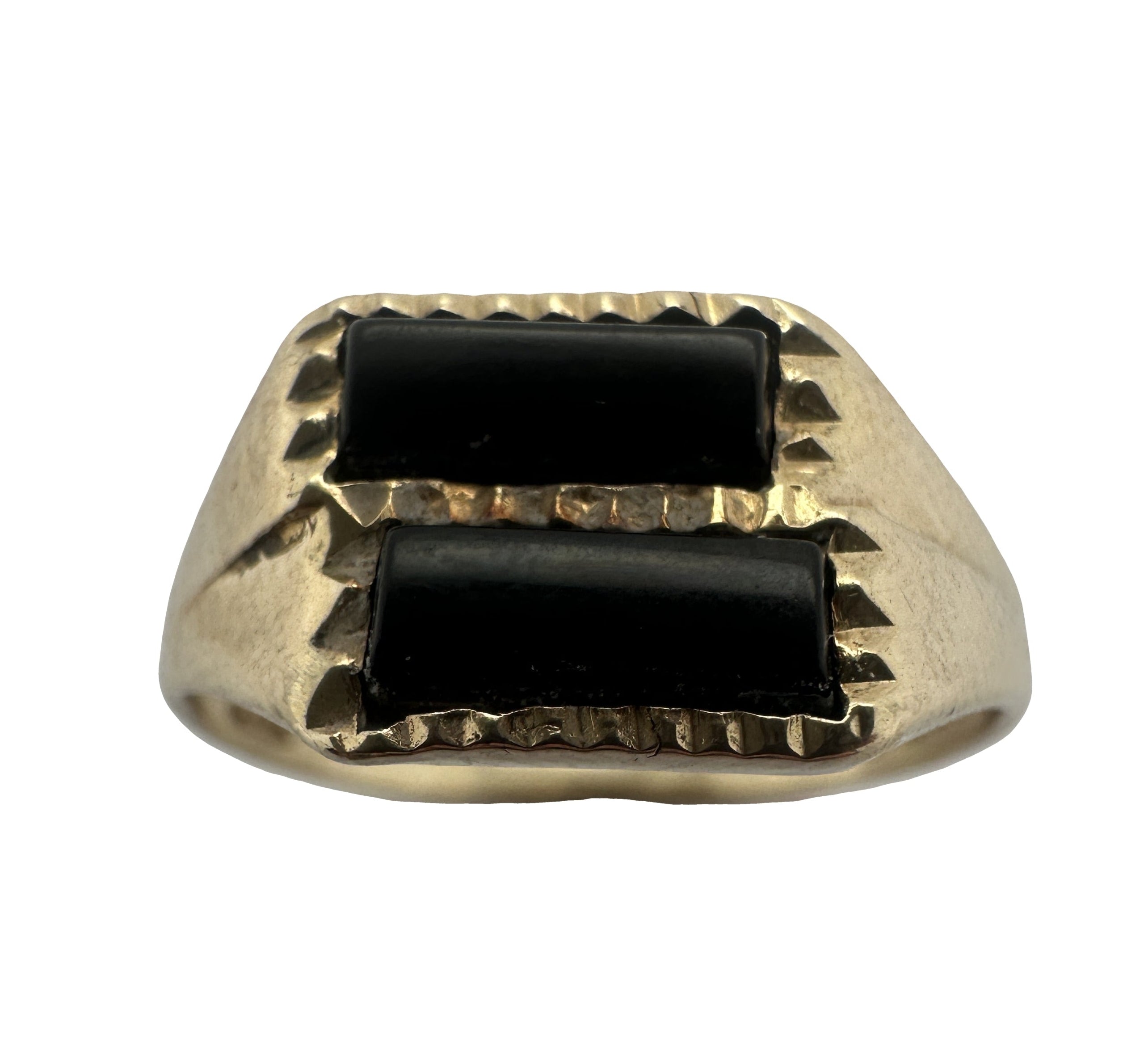 9ct Yellow Gold Rectangular Double Onyx Ring