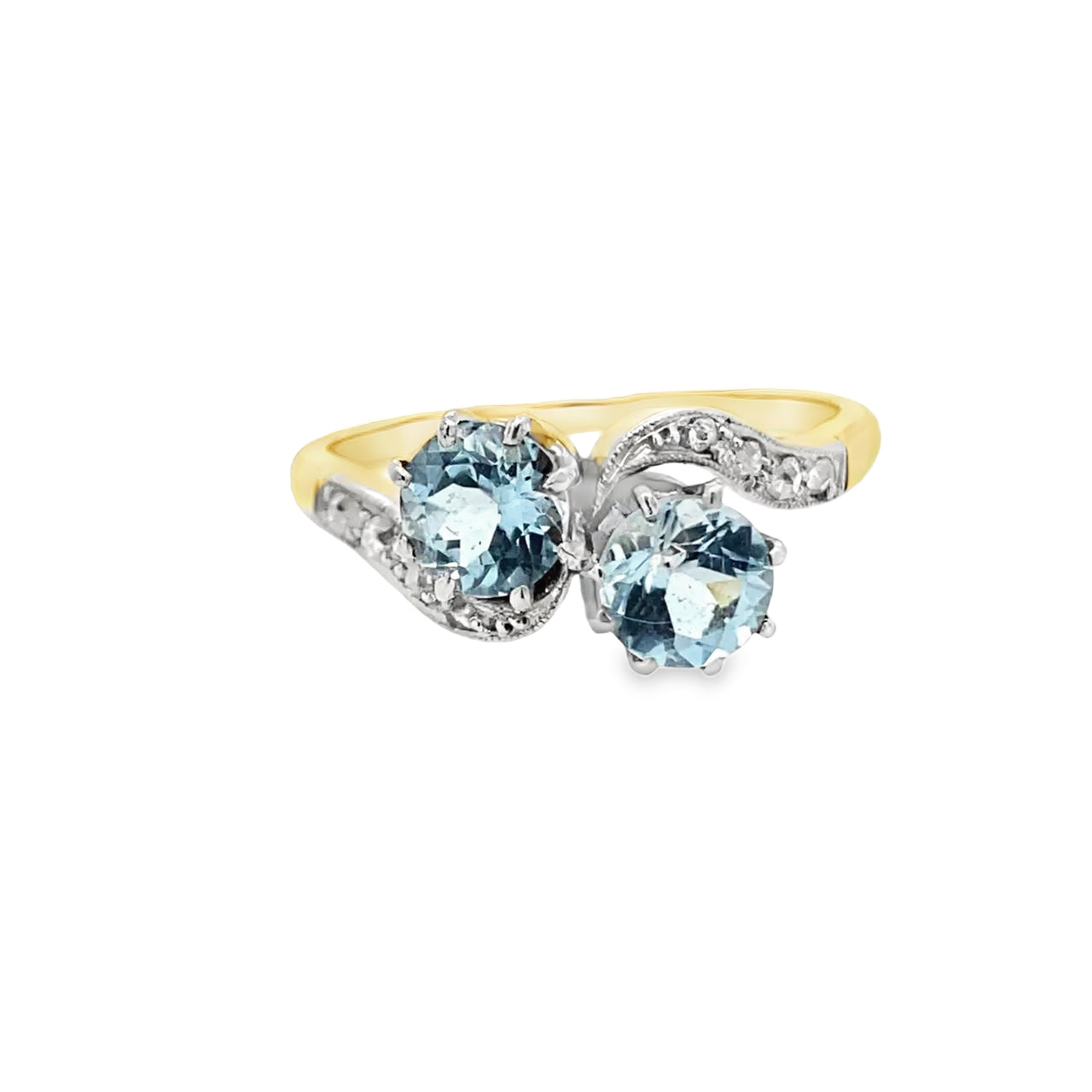 Toi et Moi Aquamarine & Diamond Crossover Ring Platinum & 18ct Yellow Gold