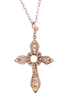 18ct Yellow Gold 1930's Cultured Pearl Cross Necklace