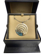 At the dawn of the new century, Chopard's iconic dancing Diamonds gave birth to Happy Spirit, a collection of jewellery endowed with mesmerising charm: talismans for the woman who wears them and a living tableau for those who observe them in action. Little Diamonds do great things. The pendant measures 41mm x 42mm with a thickness of 4.5mm. It is signed "Chopard Happy Spirit". The pendant consists of an approximate 0.07ct brilliant cut Diamond in a bezel setting. The pendant is attached to a triple 18ct white Gold forcat chain with lobster. An iconic necklace supplied with the original box and paperwork.