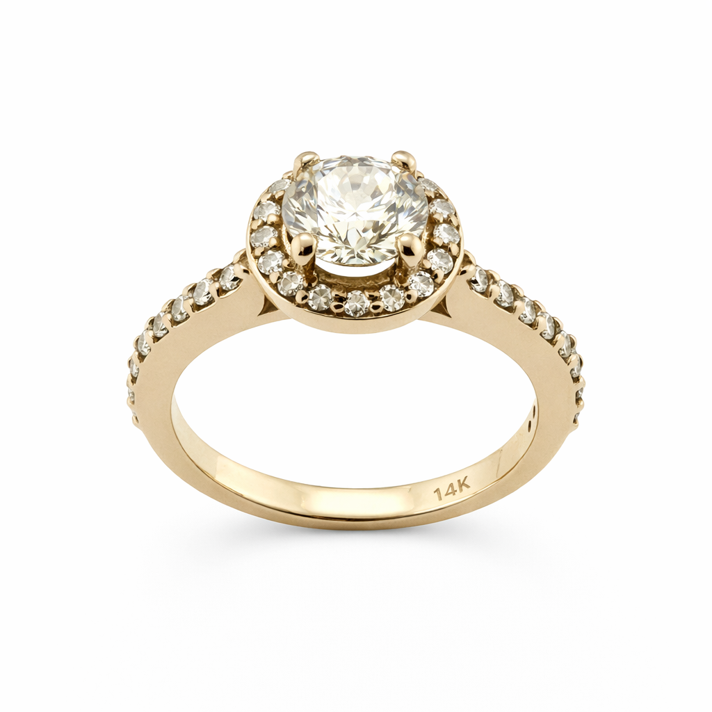 14ct Yellow Gold Diamond Halo Ring 1.20ct