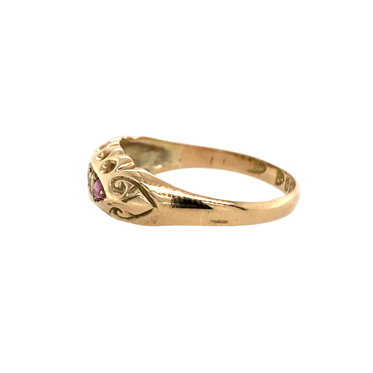 The ring is English hallmarked, confirming 9ct gold purity and dated 1915, and has been lovingly cared for over its lifetime. It is offered in good pre-owned condition, with only light signs of age consistent with an antique piece.