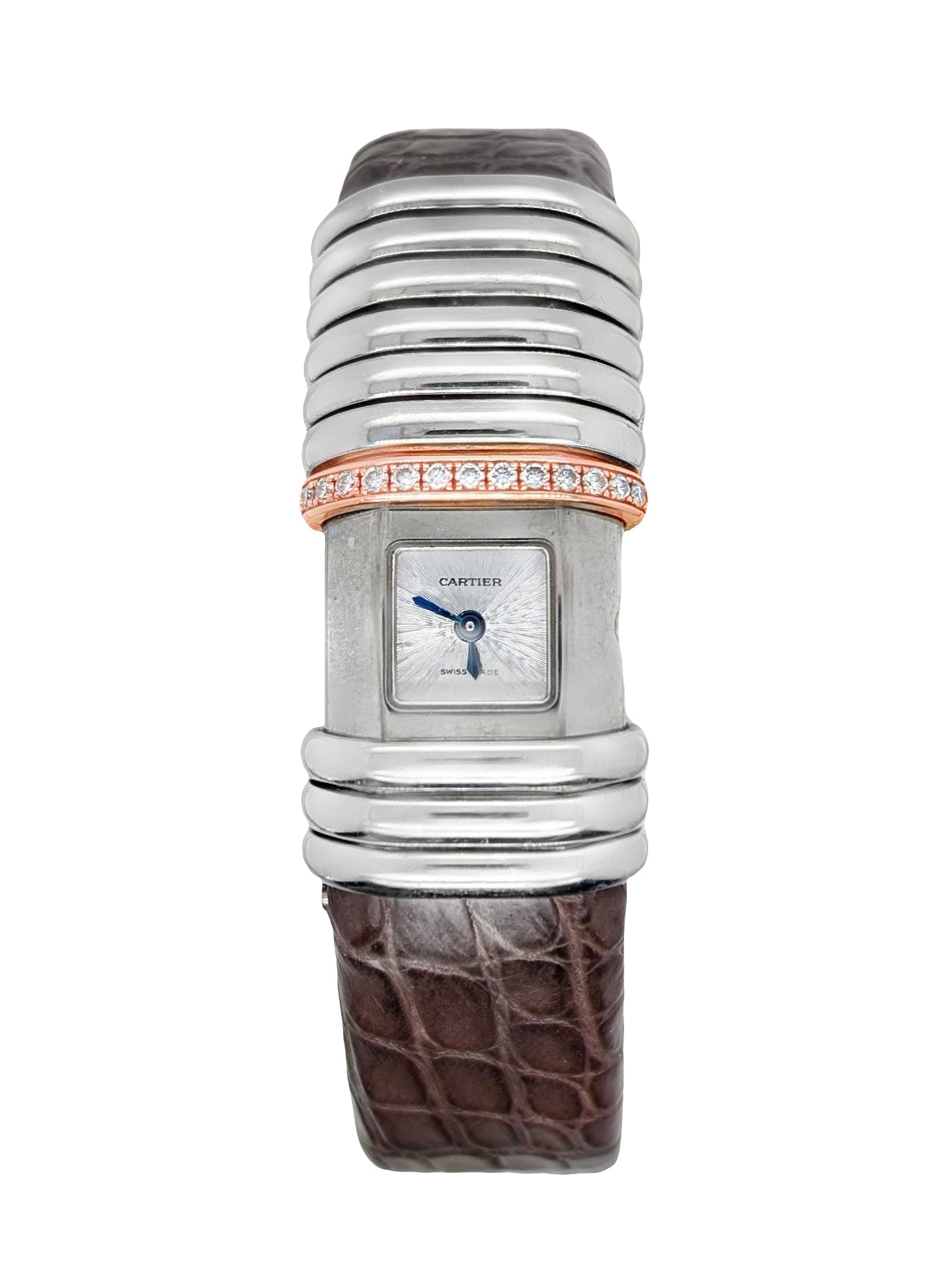 The watch is paired with a high-quality Cartier brown leather strap, secured with an authentic Cartier deployment clasp for comfort, longevity, and a securely tailored fit. Powered by a precise Cartier quartz movement, it offers reliable, low-maintenance performance synonymous with the brand’s craftsmanship.