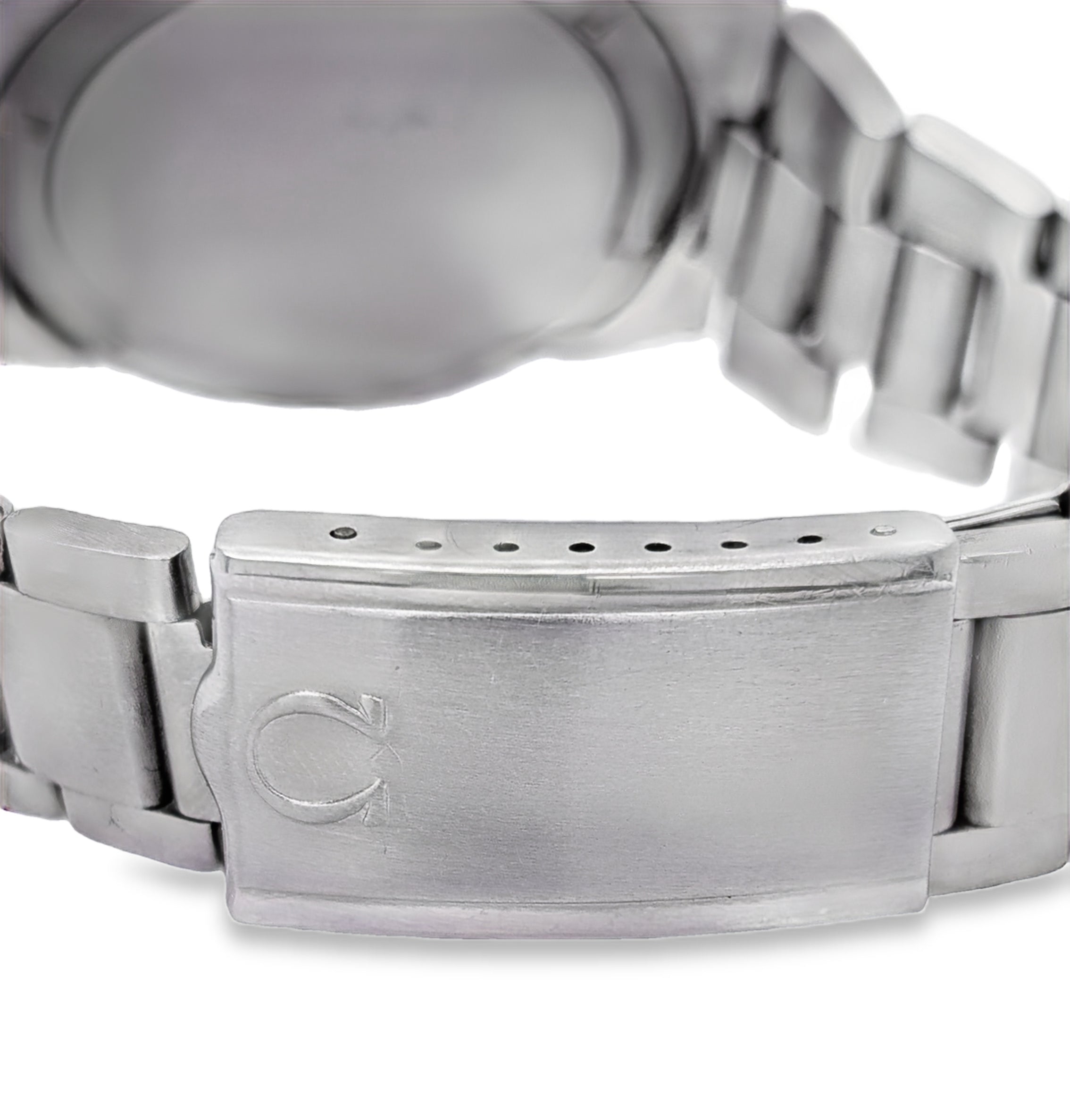 Powered by the reliable Omega Calibre 752 automatic movement, the watch features both day and date complications, and operates with smooth precision. It comes fitted with an original-style integrated stainless steel bracelet, designed to seamlessly follow the contours of the case for a sleek and unified appearance.