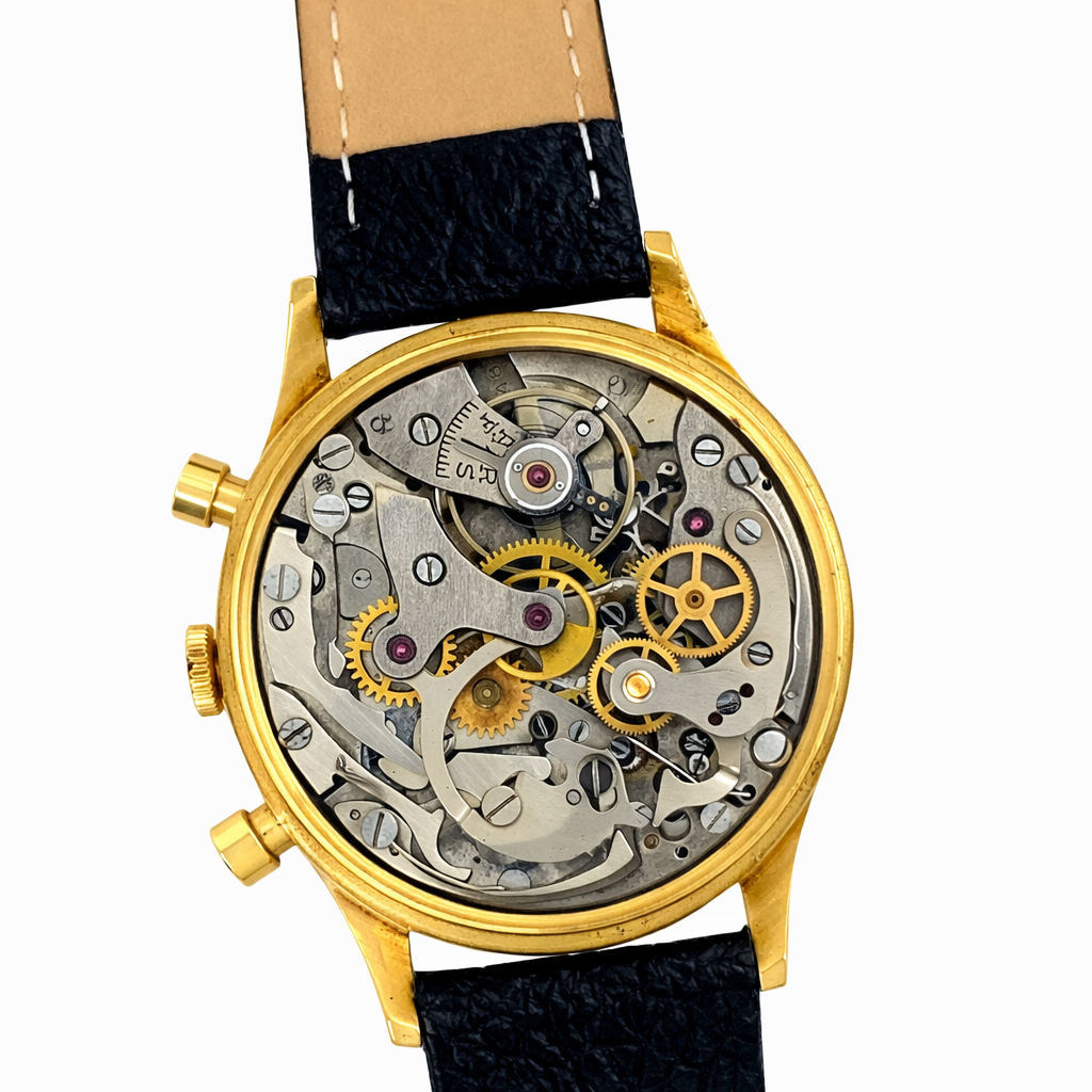 This is a 1950s Swiss chronograph watch.
