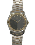 Ebel’s iconic hexagonal case with a solid caseback highlights the brand’s renowned craftsmanship, while the reliable quartz movement ensures accuracy. A must-have for collectors and lovers of classic design, this vintage Ebel is the epitome of understated luxury.