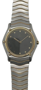 Step back into timeless elegance with this Vintage Ladies Ebel Classic Wave Quartz Watch, Circa 1986. Showcasing an 18ct gold bezel on a stainless steel case, this watch embodies the perfect blend of luxury and sophistication. The grey dial paired with a two-tone silver and gold wave bracelet makes it a striking yet versatile accessory.