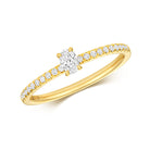This exquisite 18ct Gold ring features a captivating 0.19ct oval-shaped Diamond at its centre, elegantly secured by a four-claw prong setting. The oval Diamond, with its G colour and VS2 clarity, sparkles brilliantly, making it the perfect focal point for this sophisticated piece. The brilliance and clarity of the central stone are beautifully complemented by smaller brilliant cut Diamonds set along the shoulders, which have a combined carat weight of 0.16ct.