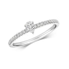 This exquisite 18ct Gold ring features a captivating 0.19ct pear-shaped Diamond at its centre, elegantly secured by a three-claw prong setting. The pear-cut Diamond, renowned for its unique teardrop shape, radiates brilliance with its G colour and VS2 clarity, making it the perfect focal point of this sophisticated piece. The central Diamond is complemented by smaller brilliant cut stones set along the shoulders, adding a combined carat weight of 0.16ct. These additional Diamonds enhance the ring's overall sparkle and elegance.