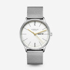 Choose from a curated range of straps to suit your look: the Heritage 20 in dark brown or black genuine cowhide leather with elegant alligator embossing, or opt for the contemporary feel of the Milanaise 20 or ultra-thin SuperSlim 20 silver metal strap.