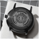 Case Back: Features an engraved Bauhaus curriculum, celebrating a landmark in design history.