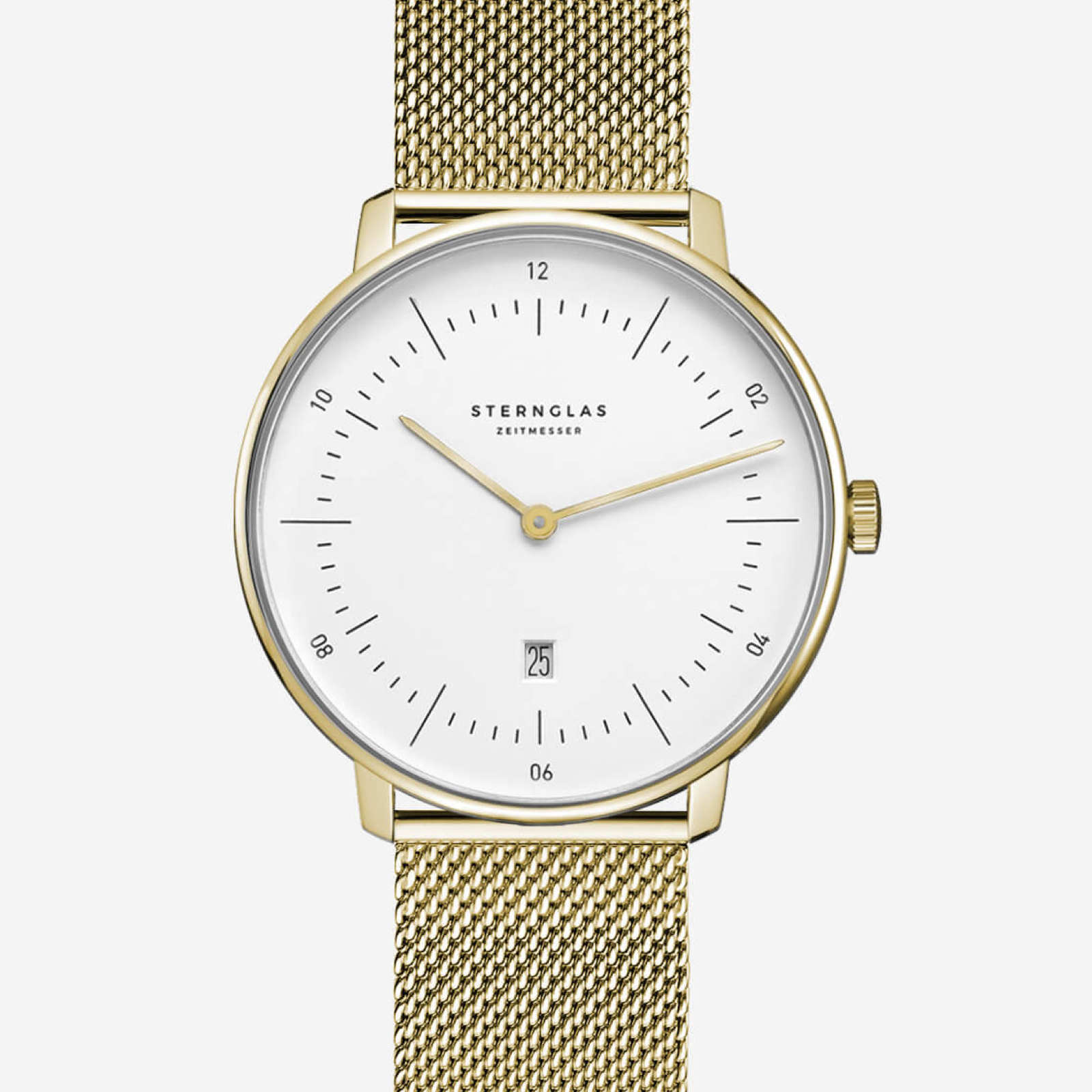 Bracelet: 16 mm gold Milanese bracelet, made from 316L stainless steel with a PVD gold finish, offering both elegance and comfort.