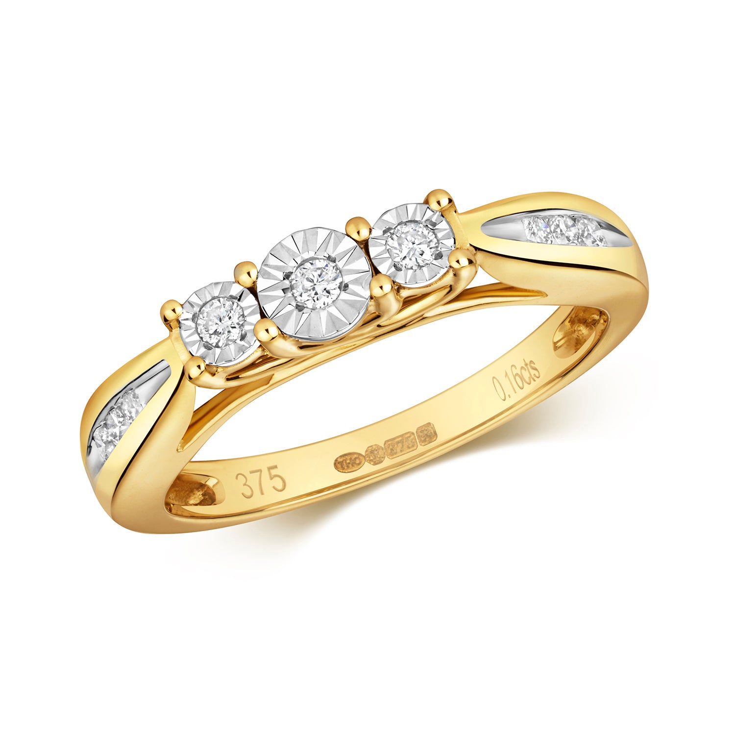 9ct Yellow Gold Diamond Trilogy Ring – 0.15ct