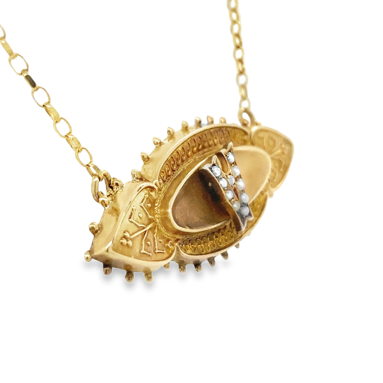 1893 Antique 9ct Gold Pendant with Seed Pearls – Converted Brooch on 16" Belcher Chain