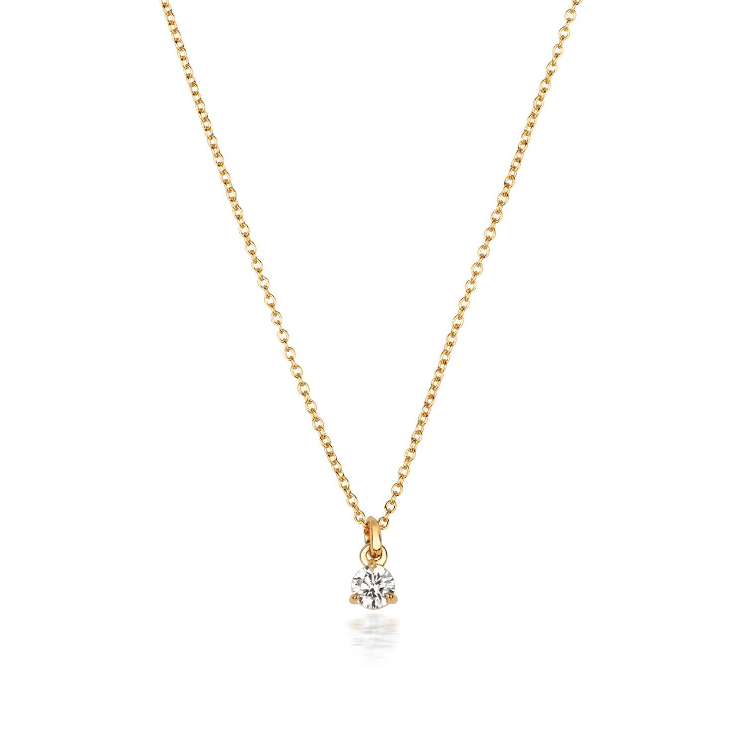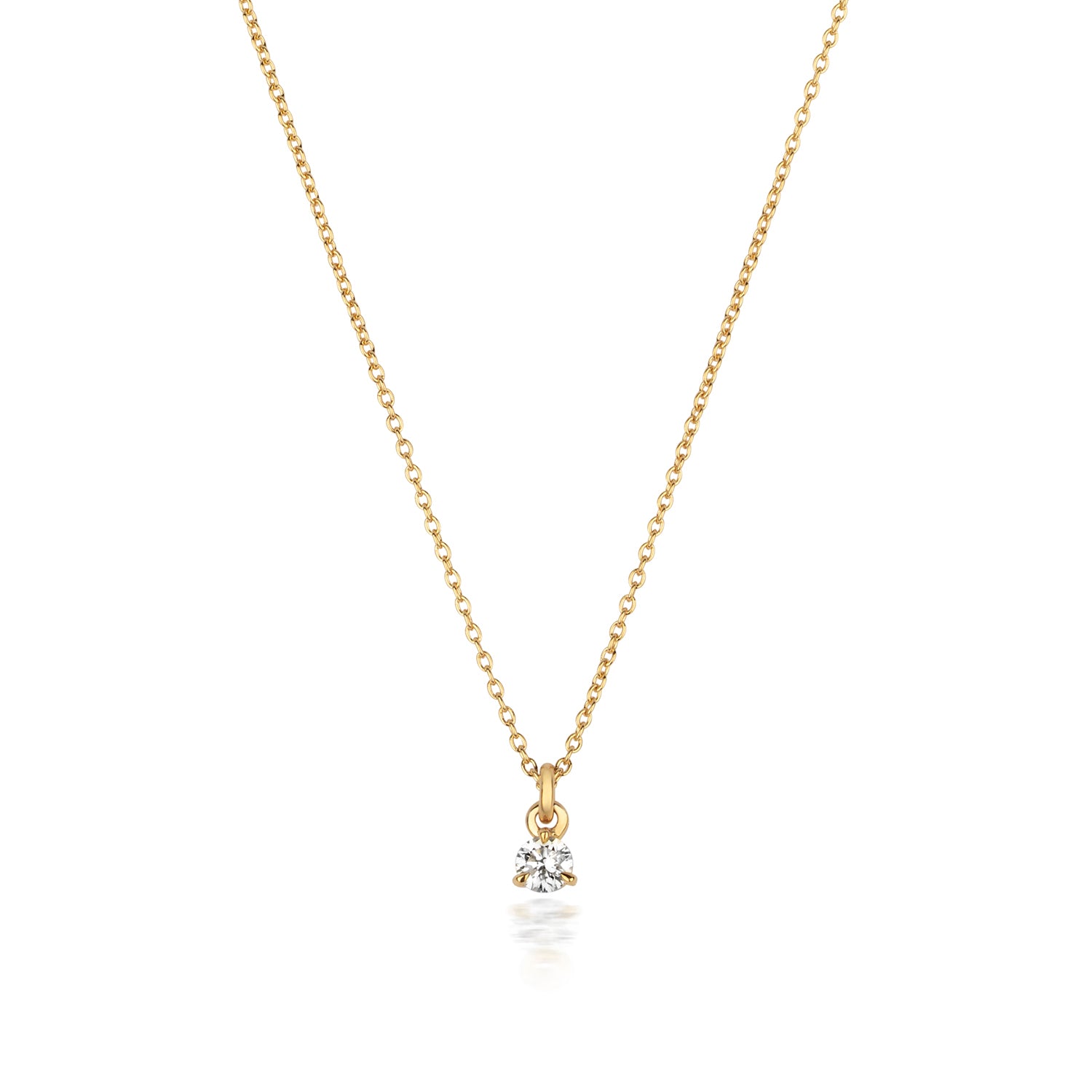 Explore elegance with our collection of 18ct Gold single necklaces, featuring a brilliant cut Diamond of H colour ranging from 0.05ct to 0.10ct. Each stone is delicately held in place by a secure 3-claw setting, ensuring both beauty and durability. The necklaces weigh just 1.2 grams, combining lightweight comfort with timeless sophistication.