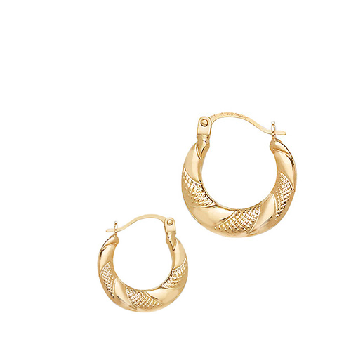 9ct Yellow Gold Three Section Milgrain Creoles Small (14mm)