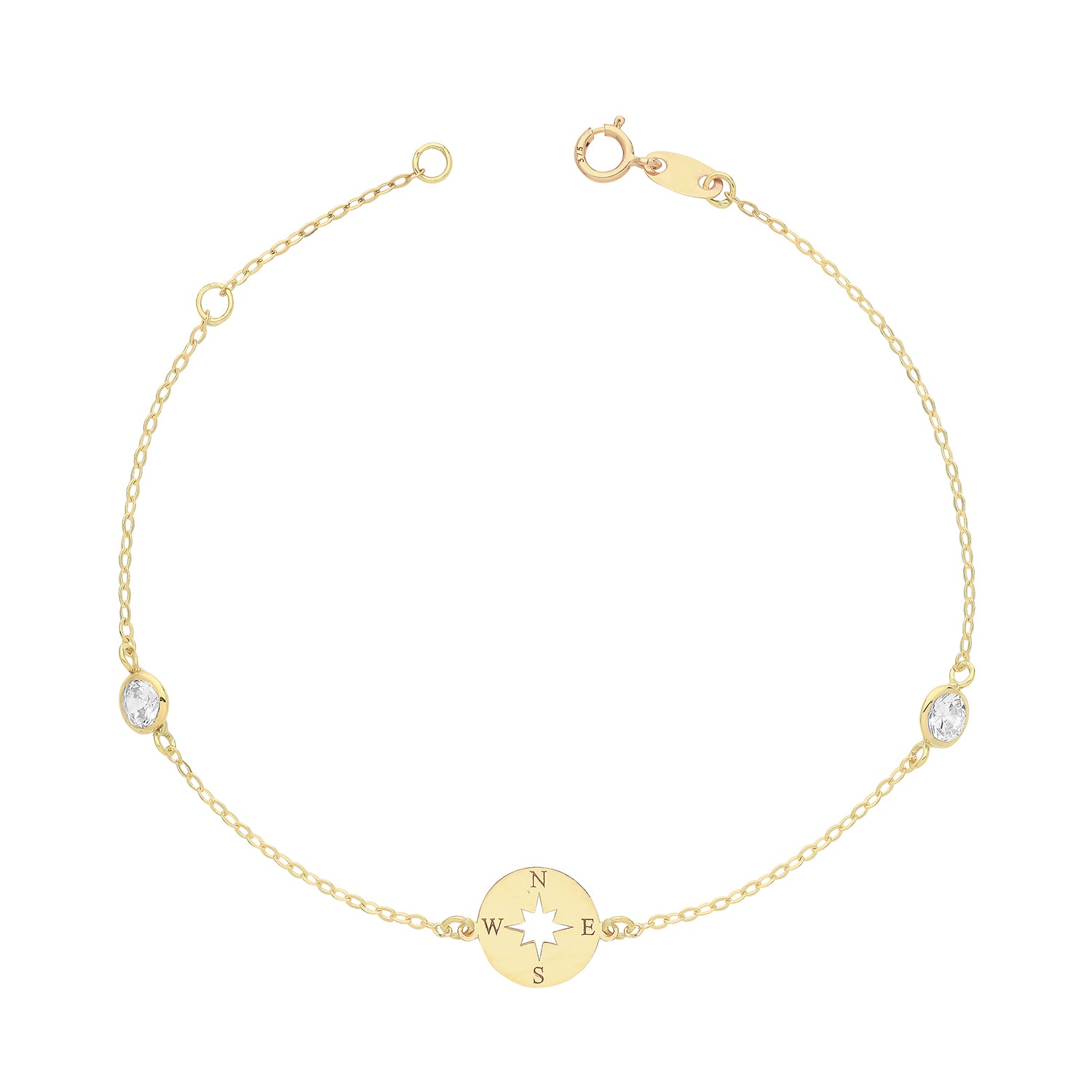 9ct Yellow Gold Compass Bracelet with Cubic Zirconia (6"+1")