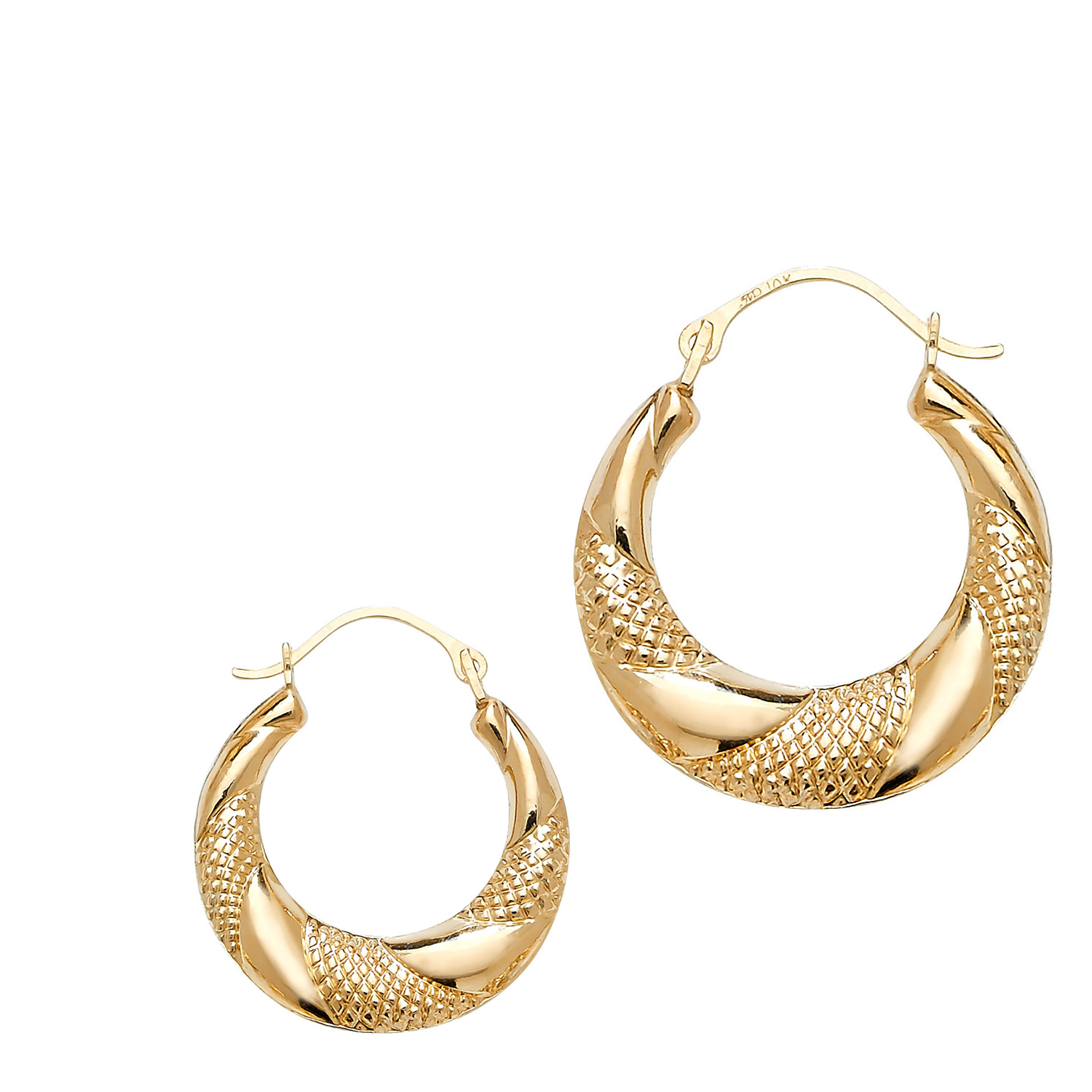9ct Yellow Gold Three Section Milgrain Hoops (20mm)