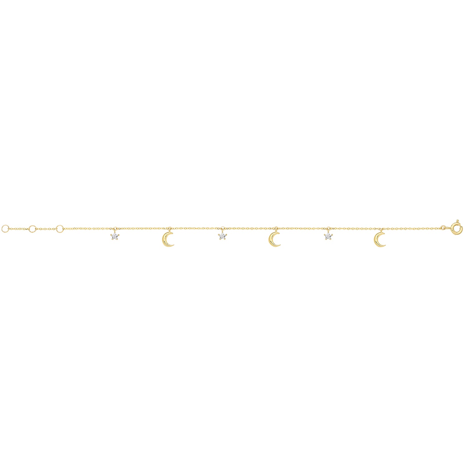 Crafted from high-quality 9ct yellow gold, the dainty chain adds a touch of sophistication, making it perfect for both everyday wear and special occasions. Whether worn alone for a subtle shimmer or layered with other bracelets for a trendy stacked look, this celestial-inspired piece is a must-have for any jewellery lover.