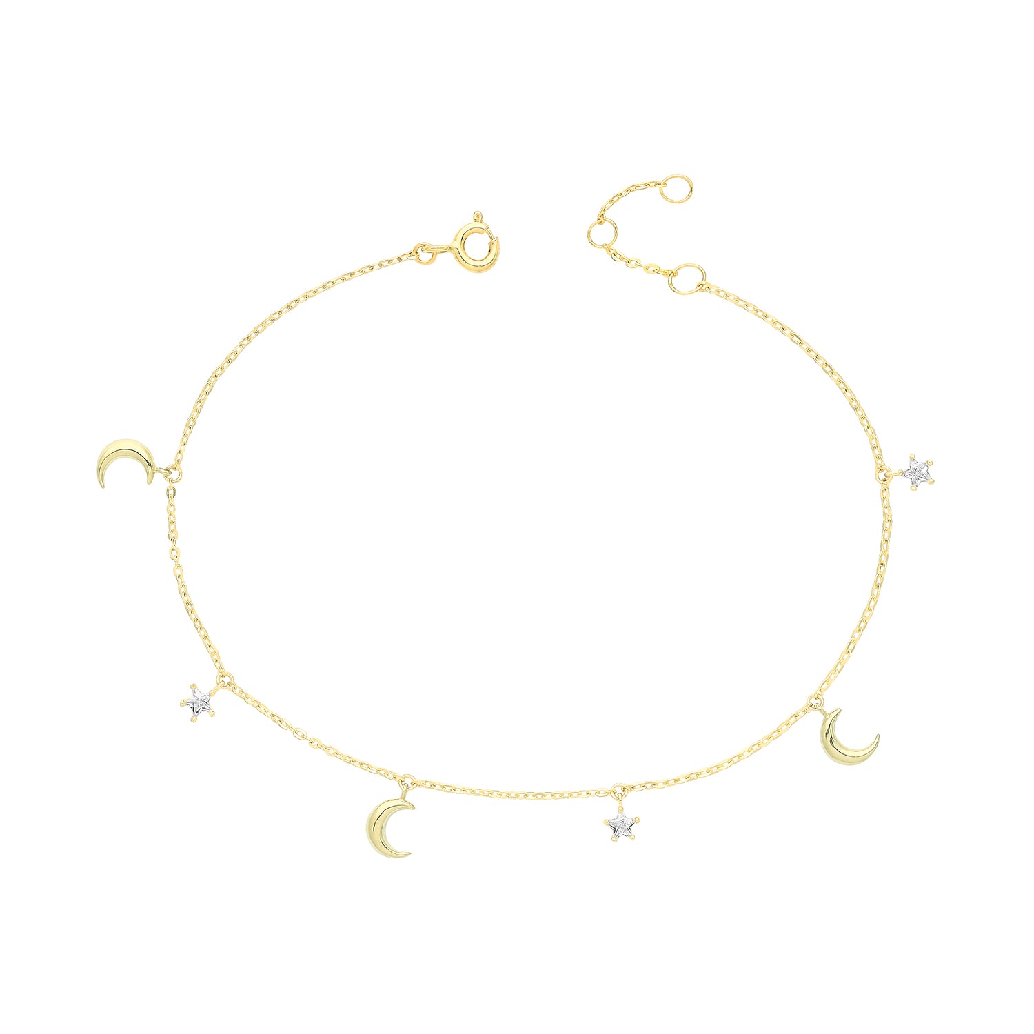 9ct Yellow Gold Cubic Zirconia Star and Moon Chain Bracelet (7.25")