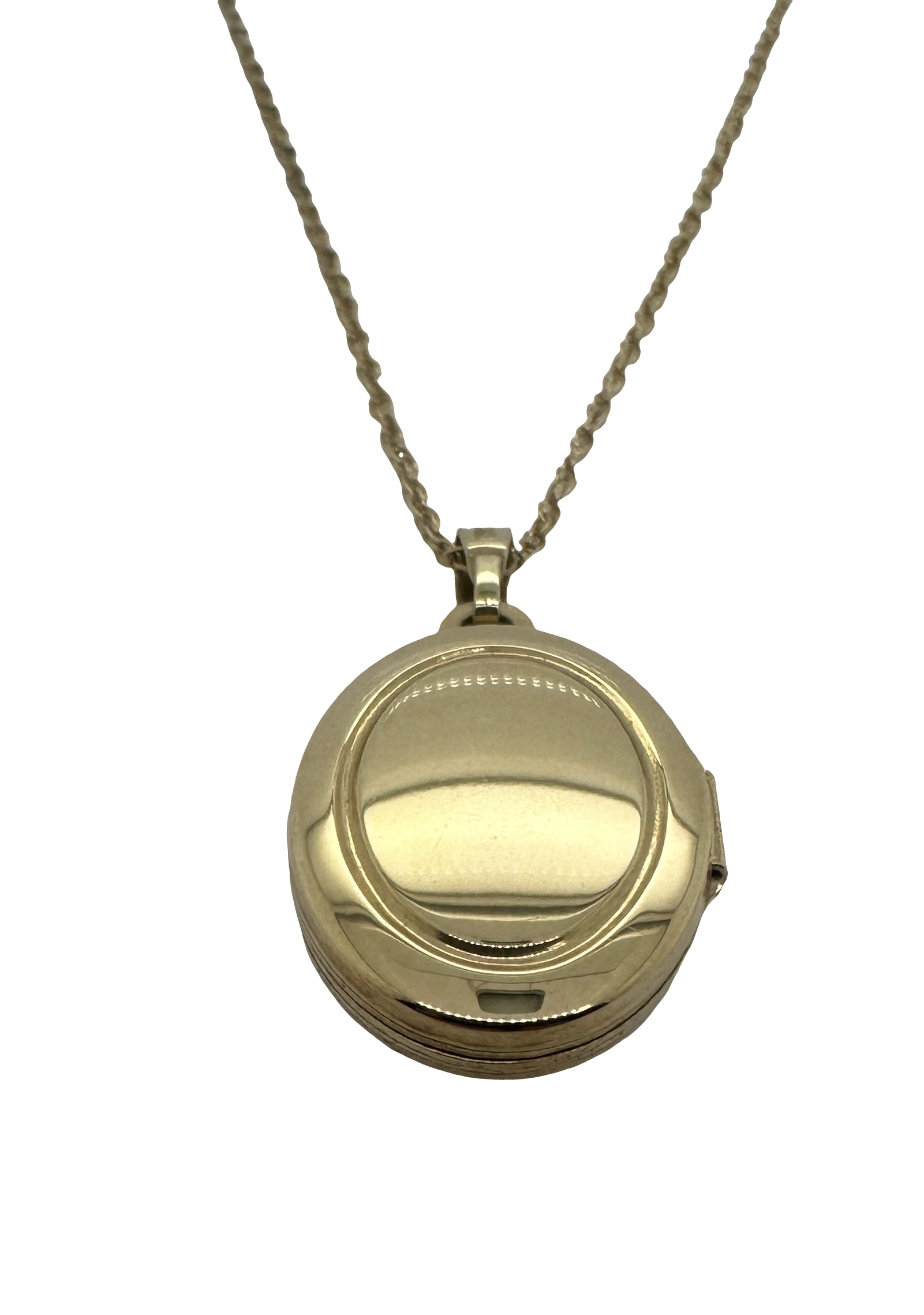 This elegant gold locket offers a traditional design with lasting appeal, perfect for marking a special moment or carrying something close to your heart.