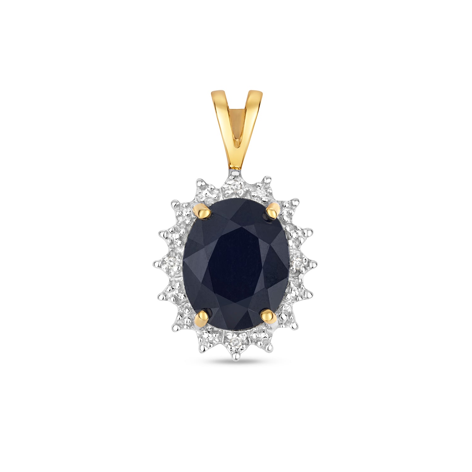 This exquisite 9ct yellow Gold Sapphire and Diamond cluster pendant showcases a stunning oval blue Sapphire, approximately 3.25ct, beautifully secured in a classic 4-claw prong setting. The rich blue hue of the Sapphire is magnificently enhanced by a halo of brilliant-cut Diamonds that encircle it, creating an enchanting floral design. This elegant arrangement not only highlights the Sapphire's vibrant colour but also adds a touch of luxury and sophistication to the piece.