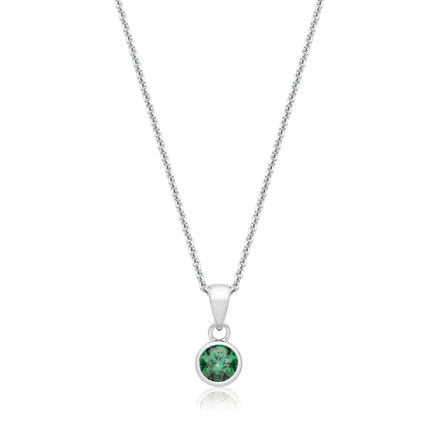 Emerald Cubic Zirconia Pendant, designed to capture the timeless beauty of emeralds. Featuring a vivid emerald-green cubic zirconia gemstone in a secure rub-over setting, this pendant exudes elegance and sophistication. Suspended from a sleek V-loop and paired with a fine rhodium-plated silver chain, this piece is both classic and versatile. Perfect as a meaningful gift or a personal treasure.