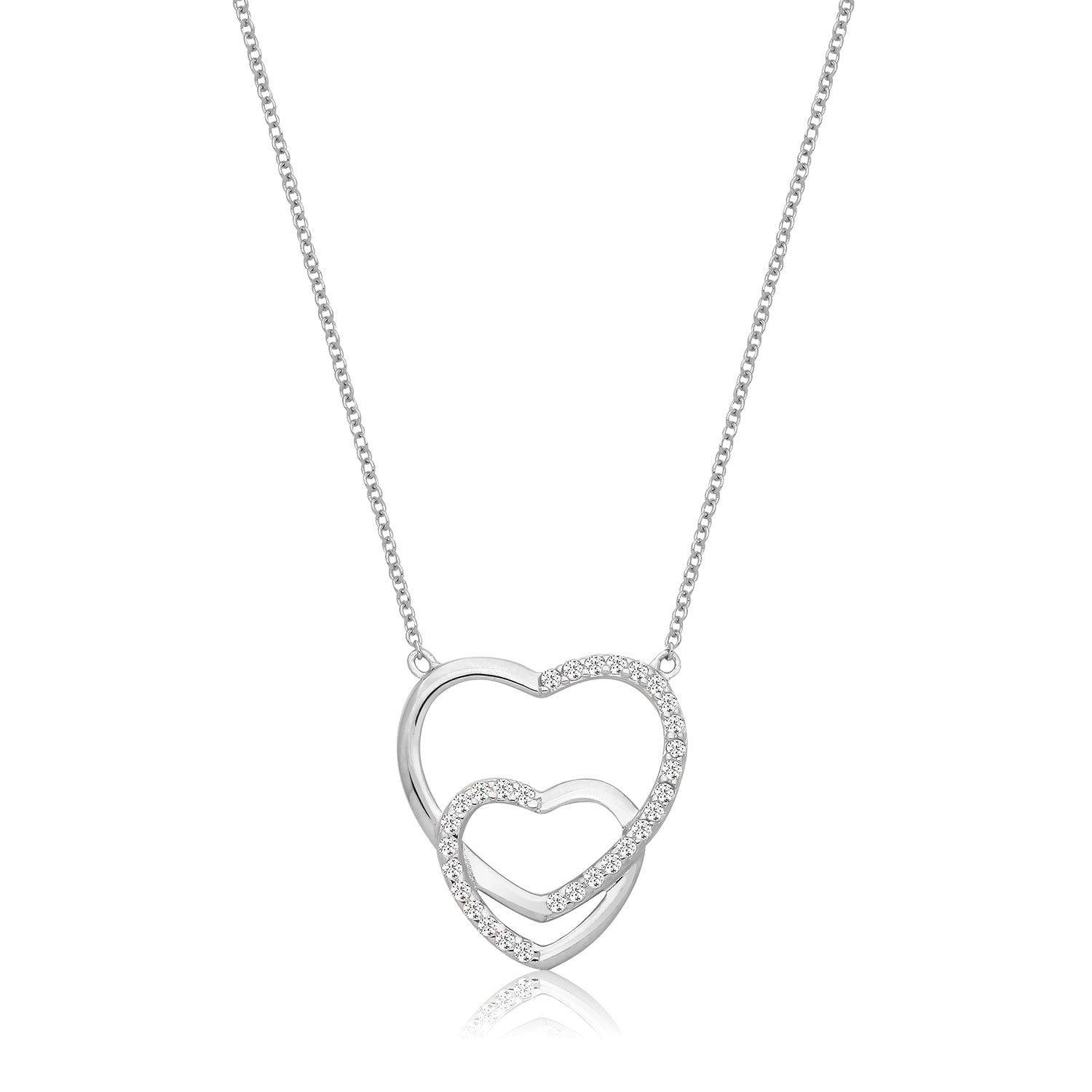 Sterling Silver Interlinked Double Heart Shape Plain & CZ Pendant & Chain – Rhodium Plated