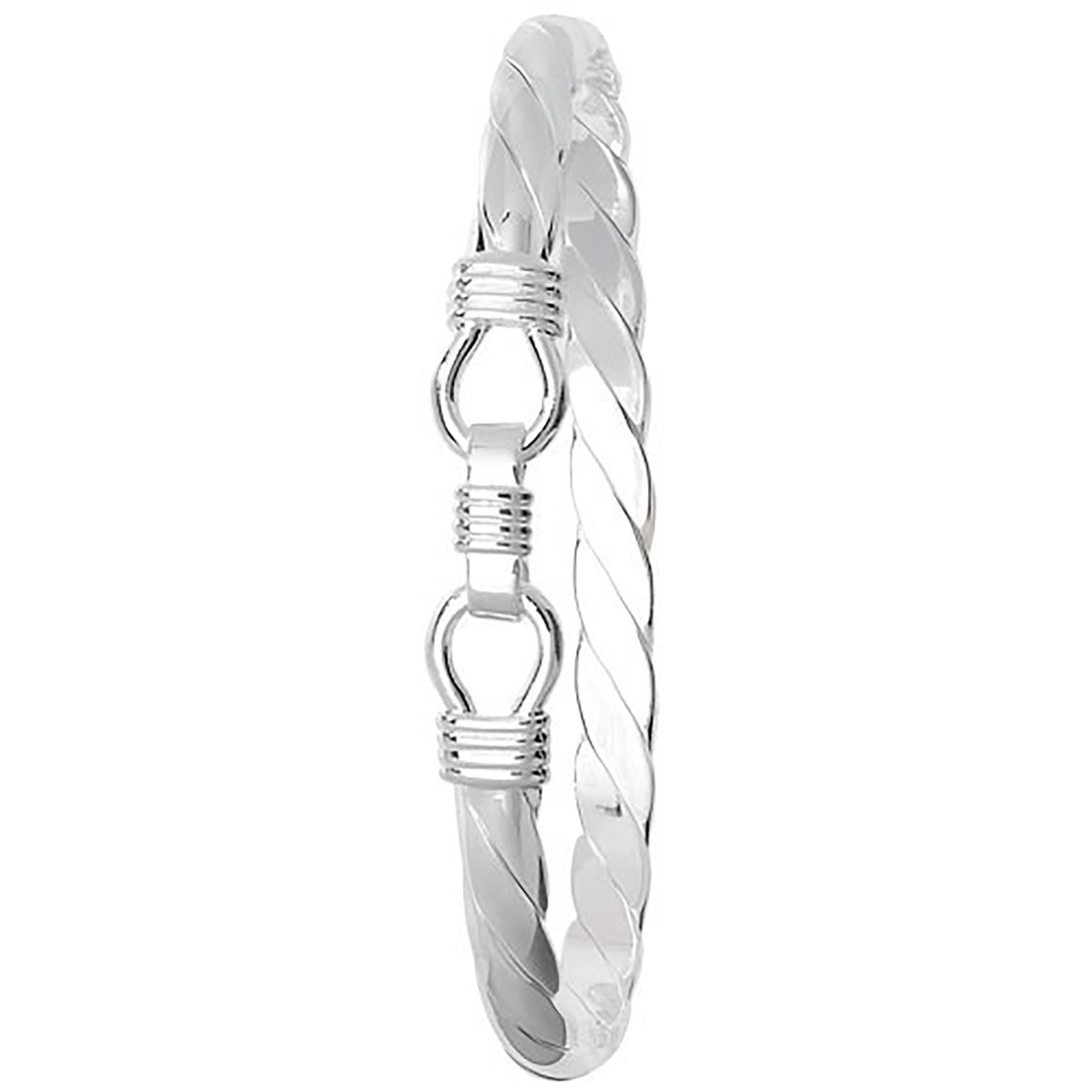 Sterling Silver Oval Loop Catch Twisted Bangle (Mens)