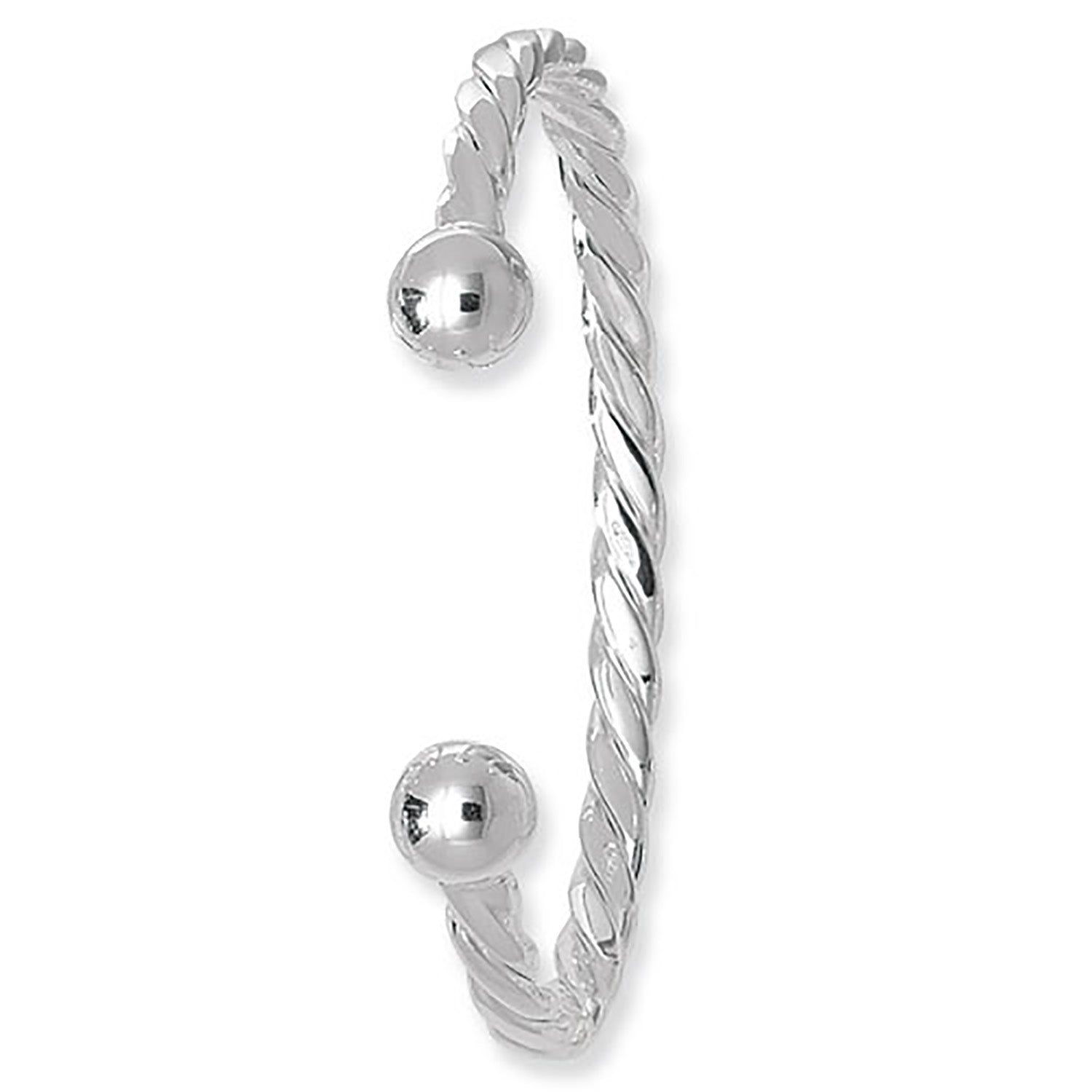 Add a touch of sophistication to your jewellery collection with this Sterling Silver Twisted Torque Bangle. Beautifully crafted from high-quality 925 sterling silver, this bangle features a unique twisted design, giving it a modern yet timeless appeal. The open-ended torque style allows for an adjustable and comfortable fit, making it perfect for everyday wear or special occasions.