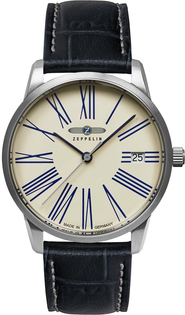 The Zeppelin Flatline Quartz is a timeless masterpiece, blending vintage charm with modern precision. Featuring a slim 8mm stainless steel case, this watch showcases a crisp white dial with contrasting blue Roman numerals and blue hands, exuding a classic yet sophisticated appeal. The power reserve indicator at 12 o’clock adds an extra layer of functionality, while the date window at 3 o’clock enhances its practicality. Powered by a precise Swiss quartz movement which guarantees accurate timekeeping. Paired with a blue leather strap, this elegant timepiece is perfect for both formal occasions and everyday wear. The Zeppelin Flatline is a refined choice for those who appreciate a balance of heritage and innovation.